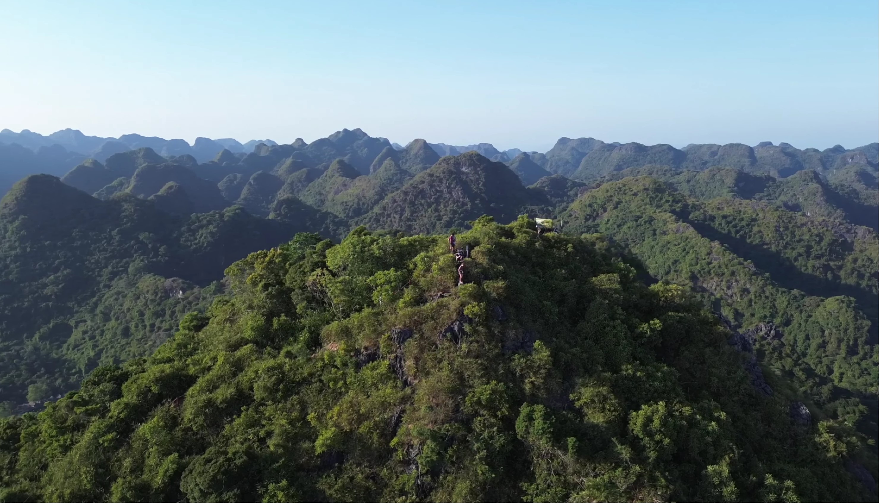 10:00: Bắt đầu hành trình trekking mạo hiểm xuyên rừng nguyên sinh thuộc Vườn Quốc gia Cát Bà. Chinh phục đỉnh Hải Quân (Navy Peak) – nơi bạn sẽ được đền đáp bằng tầm nhìn toàn cảnh ngoạn mục của Vịnh Hạ Long và làng Việt Hải từ trên cao.